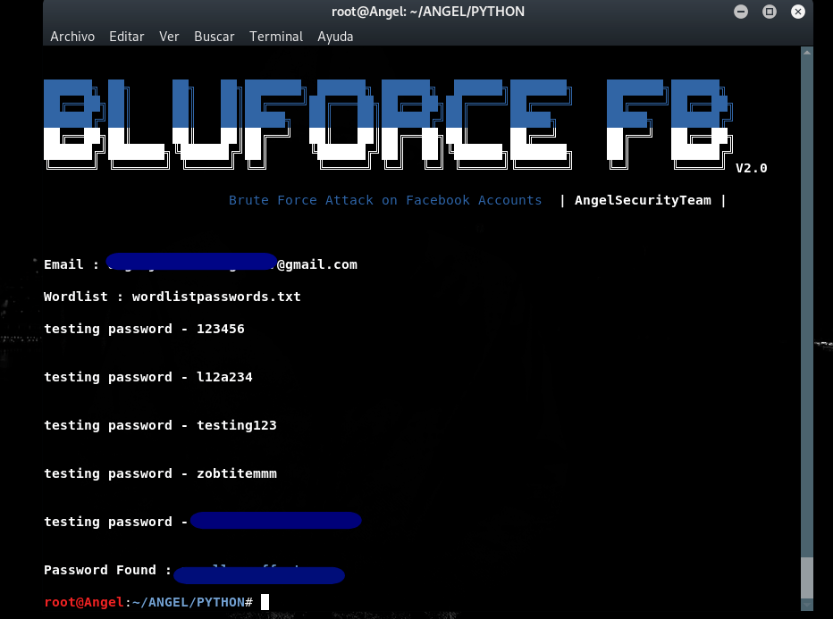 Step 6: type “python2 bluforcefb.py” to run the script.